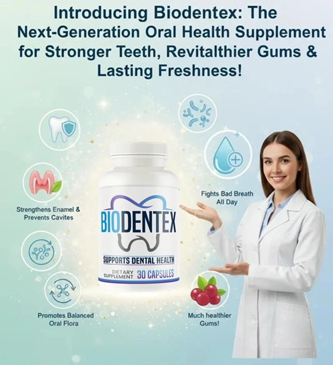 Biodentex is an advanced oral wellness supplement designed to naturally strengthen teeth, nourish gums, and support long-term dental health. Its science-backed blend of minerals, plant extracts, and nutrients works to address the root causes of oral issues like plaque buildup, gum inflammation, and enamel erosion.